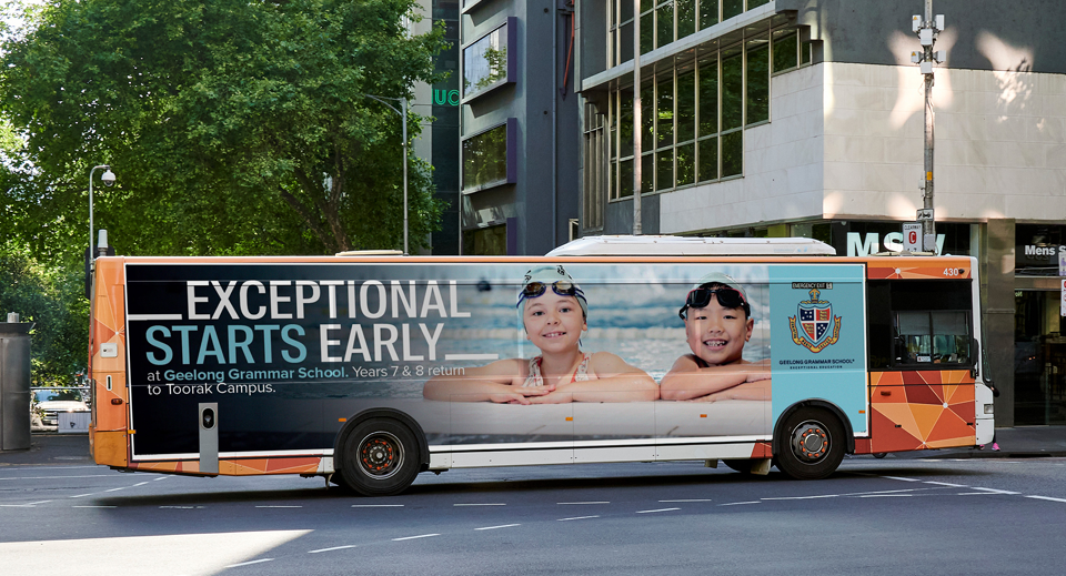 'Exceptional starts early’ It is a clarion call to families to join us on the journey of being better than usual... exceptional. The idea of ‘Early’ is a relative term which means it is an appropriate message to all parent/student segments: ELC Toorak, Timbertop Yr 9 and Corio Yr 10, along the purchasing cycle. Future success comes to those who prepare well and Geelong Grammar School provides the best preparation for families and students.