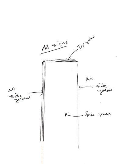 Top images are completed signs fabricated and installed. Bottom schematics show drawings and engineering.
