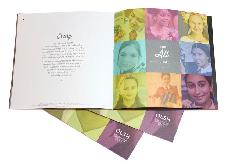 The brand proposition is a school for "All Girls". For girls who are bold, or sporty to girls who are scientific or mathematical. Girls who are old to Australia or brand new. OLSH is for girls who are muslim or catholic. OLSH caters for, and cares deeply for "All Girls". What an amazing message which brings a sense of happiness and balance to the heart. What a great school. We love OLSH! We developed the position based on both competitor analysis, internal review and what parents love about the school through dedicated focus groups. What came back is OLSH is a school which includes everyone...inclusive. This drove the positioning around the idea that OLSH is "for all girls". We then rebranded the schools entire suite of both internal and external marketing communications.