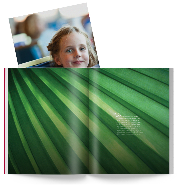 JWB&CO has taken inspiration from the attitude and language of the founding principal, Henrietta Akehurst and her daughter Ethel, pioneers and bold visonaries. Helen Carmody, the current principal, who is following in this long tradition inspired us to develop this simple idea using a bold letter form which ties perfectly into the overarching message of excellence. The "K" would live with the Korowa branding as a unique identifyer. The prospectus and all new collateral would be branded with the letter 'K' throughout. This is a signifcant historical letter because the original spelling changed from Corowa to Korowa in 1900. Changing the "C" to a "K". We wanted to continue on with this idea using the letter K as a distinctive identity device throughout the rebrand giving new marketing messaging intrique, mystique, but like the foundresses, boldness. The end goals was over time have the letter K be synomous with excellence and therefore Korowa.