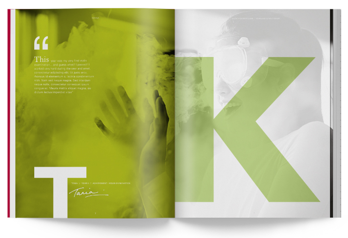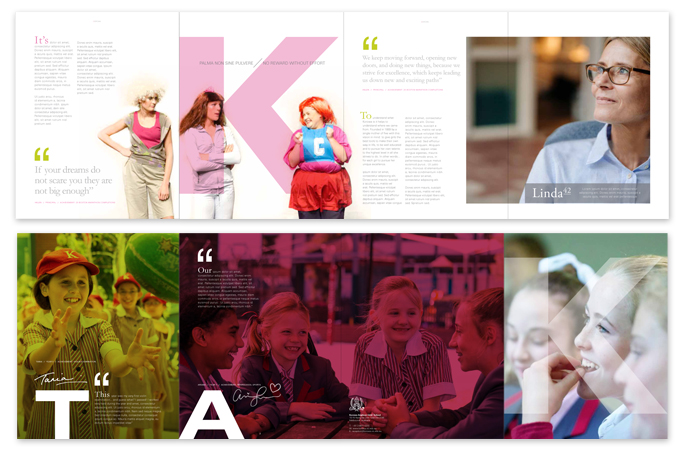 The prospectus and website move through student stories of achieving excellence in whichever field it may be. Highlighting individuals in their area of success and answering how K = excellence.